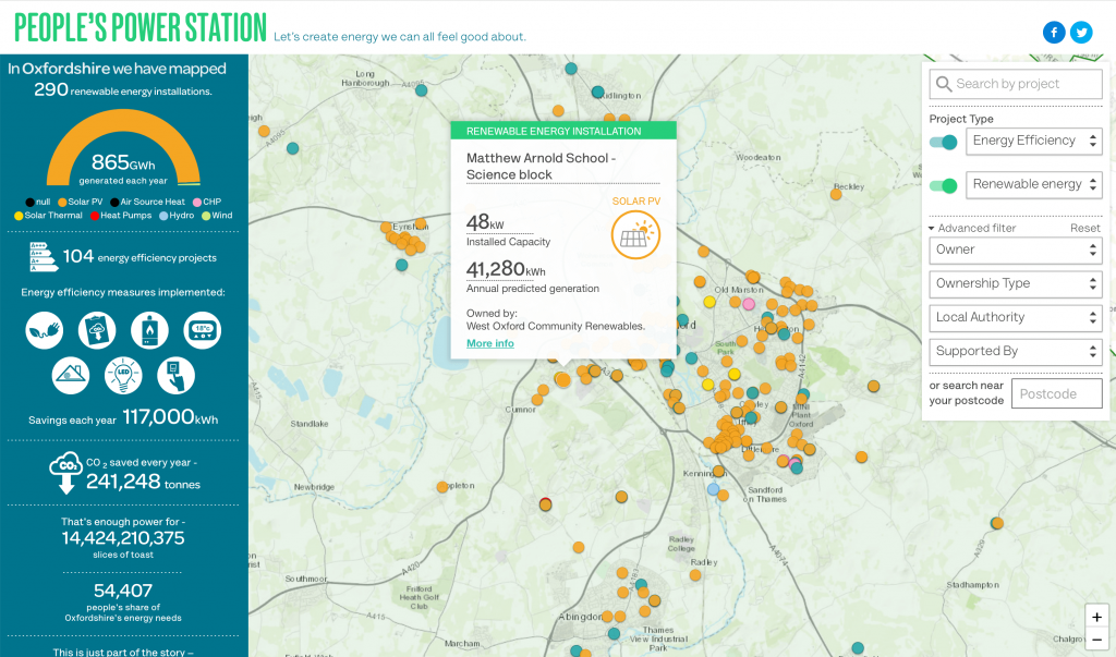 The People’s Power Station is an online platform showing the impact that renewable, local and community-owned energy is having in Oxfordshire.