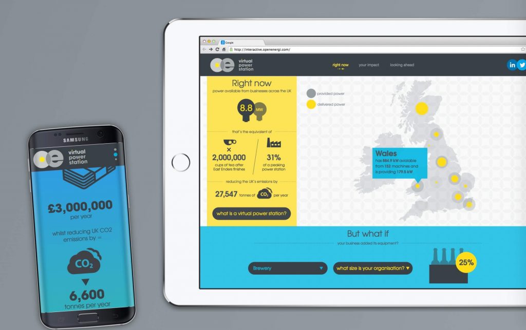 Interactive for Open Energi to communicate the real and future impact of renewable energy dynamic demand response (DDR).